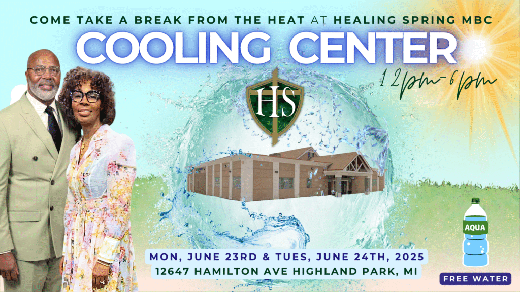 Come take a break from the heat at Healing Spring MBC!!! We’ll be a COOLING CENTER today and tomorrow between 12p and 6p!