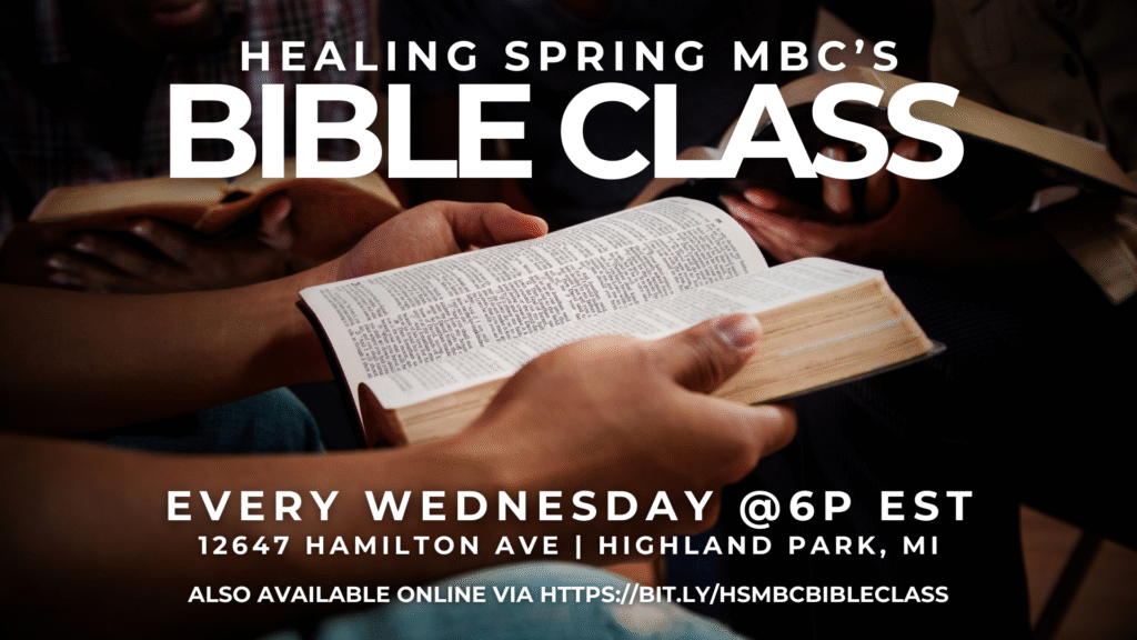 THIS EVENING & EVERY WEDNESDAY!!! Join us for Bible Class with Pastor Patrick L Franklin at Healing Spring MBC at 6pm EST!!! Join us for word and worship!!!